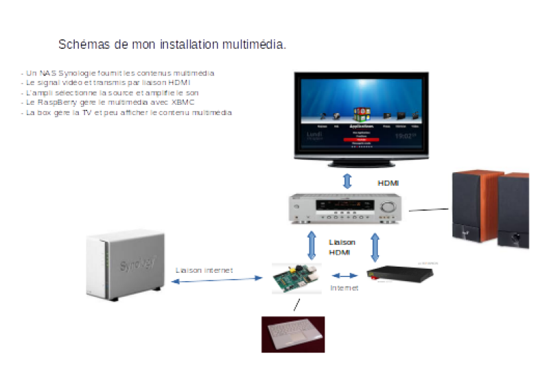 Voici en gros mon installation multimédia décrit dans un schémas.